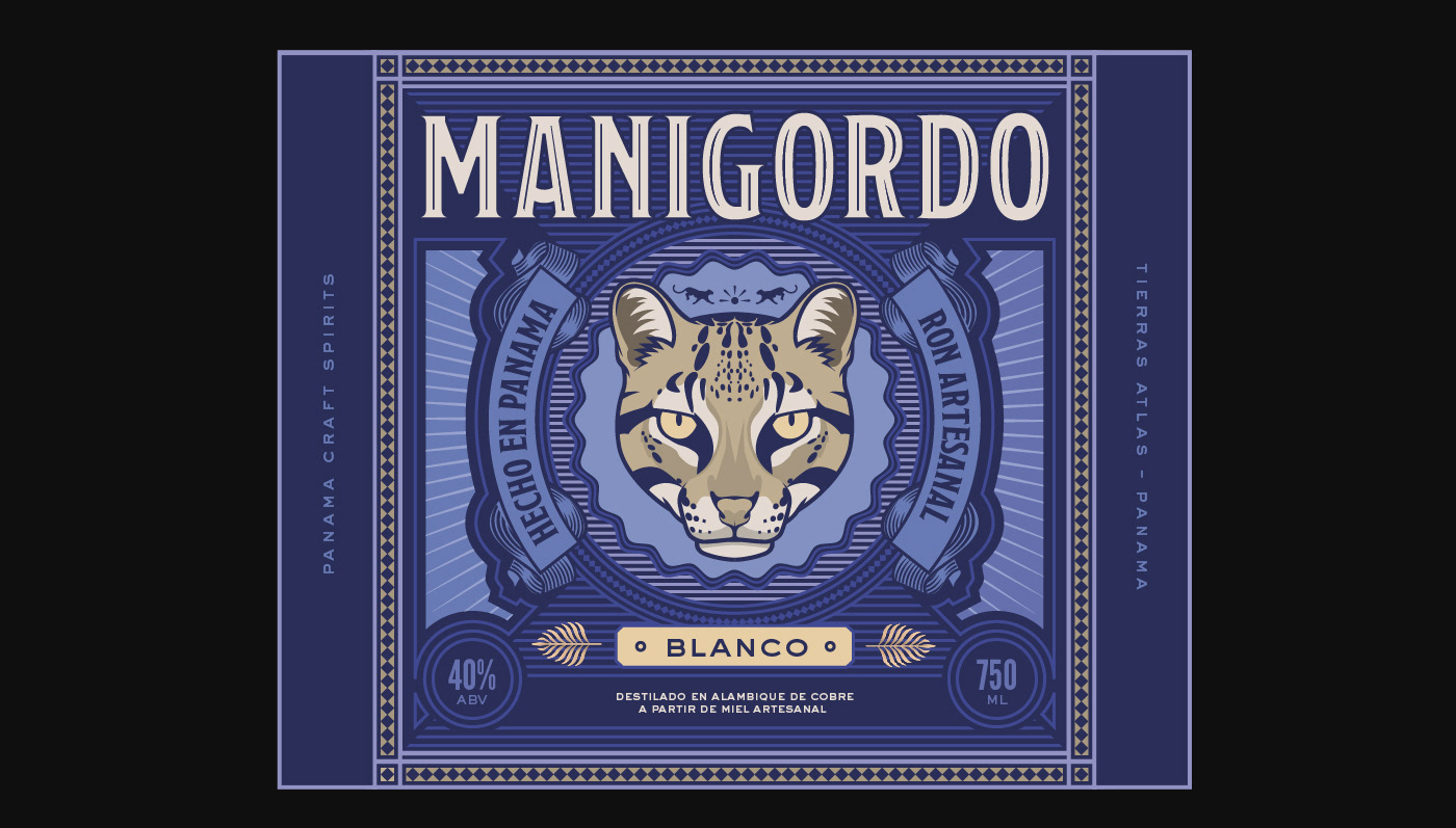Packaging design for Manigordo, a Panamanian white rum.